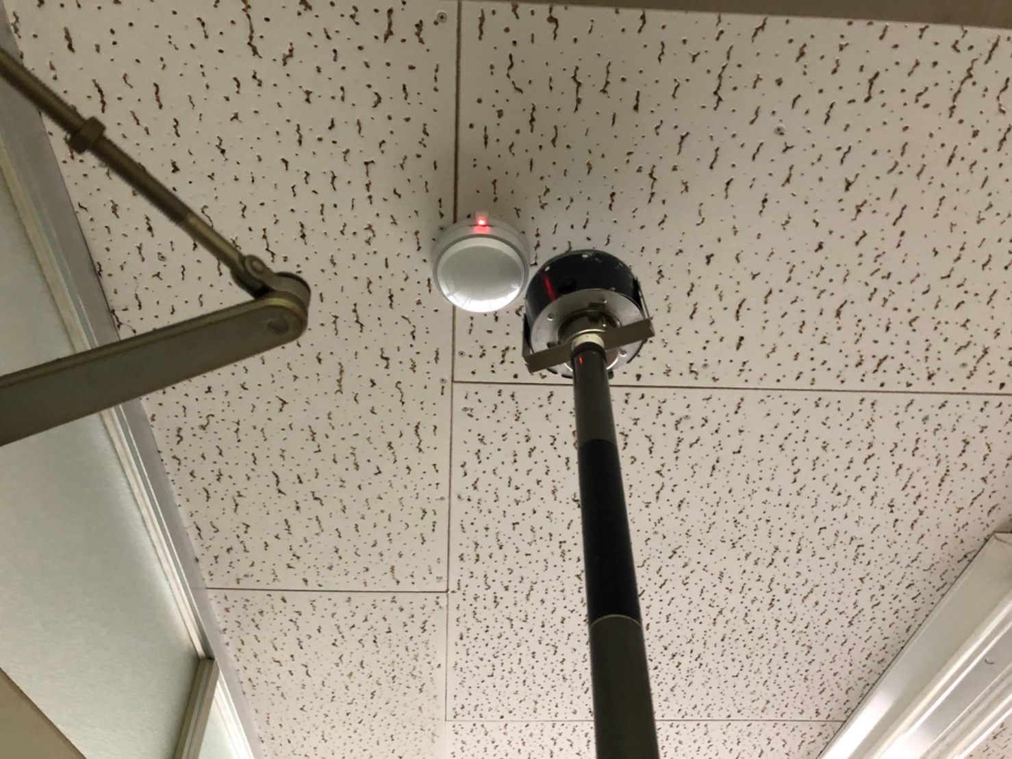 下の写真は、自動火災報知設備 感知器の点検です。